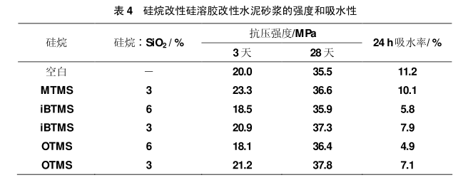 由此可見,硅烷改性的硅溶膠水分散液對水泥砂漿的防水性能有明顯的改善。